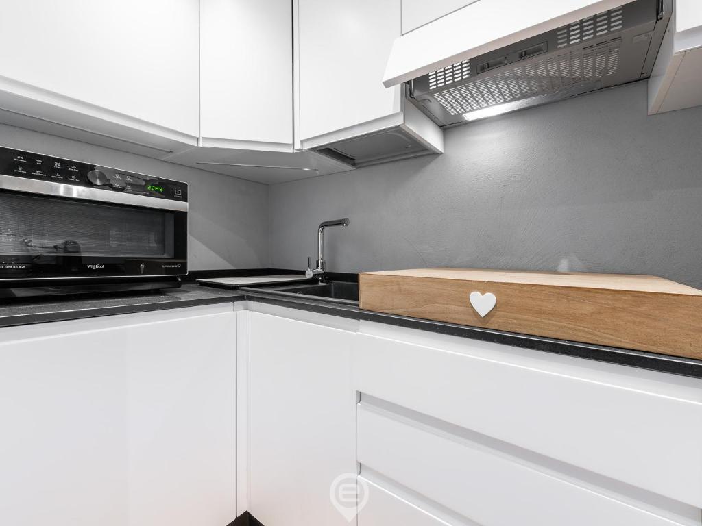 The air-conditioned apartment is composed of 1 separate bedroom, a fully equipped kitchenette with an oven and a microwave, and 1 bathroom.
