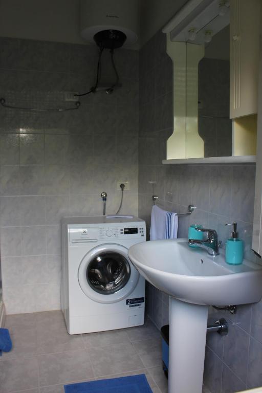 The apartment features 1 bedroom, a fully equipped kitchenette with an oven and a toaster, a washing machine, and 1 bathroom with a hair dryer.
