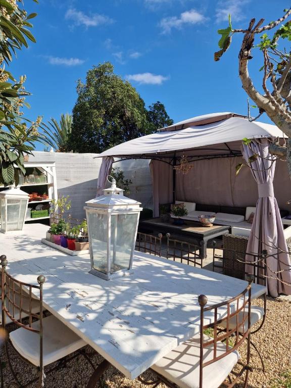 The property has an outdoor dining area.